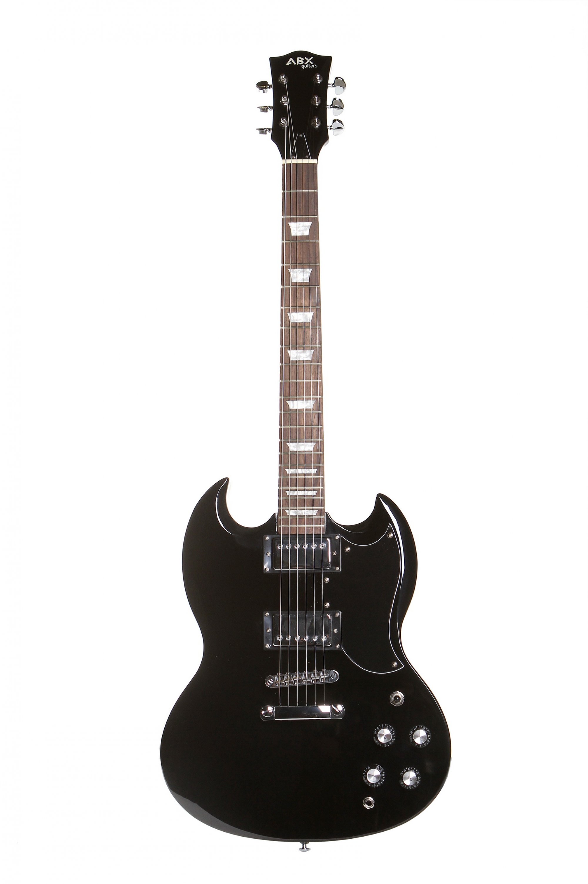 Elektrická kytara typu SG, v černé barvě, high gloss.