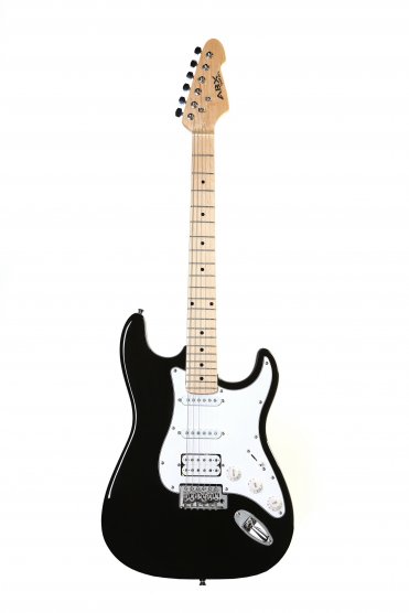Elektrická kytara typu ST, v černé barvě, high gloss.