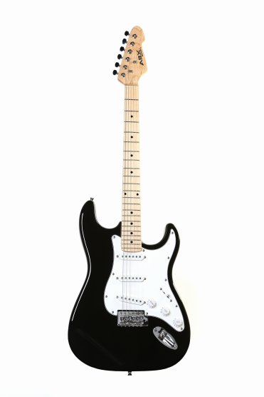 Elektrická kytara typu ST, v černé barvě, high gloss.