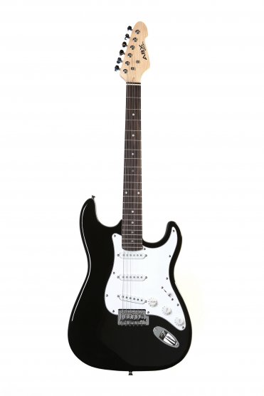 Elektrická kytara typu ST, v černé barvě, high gloss.