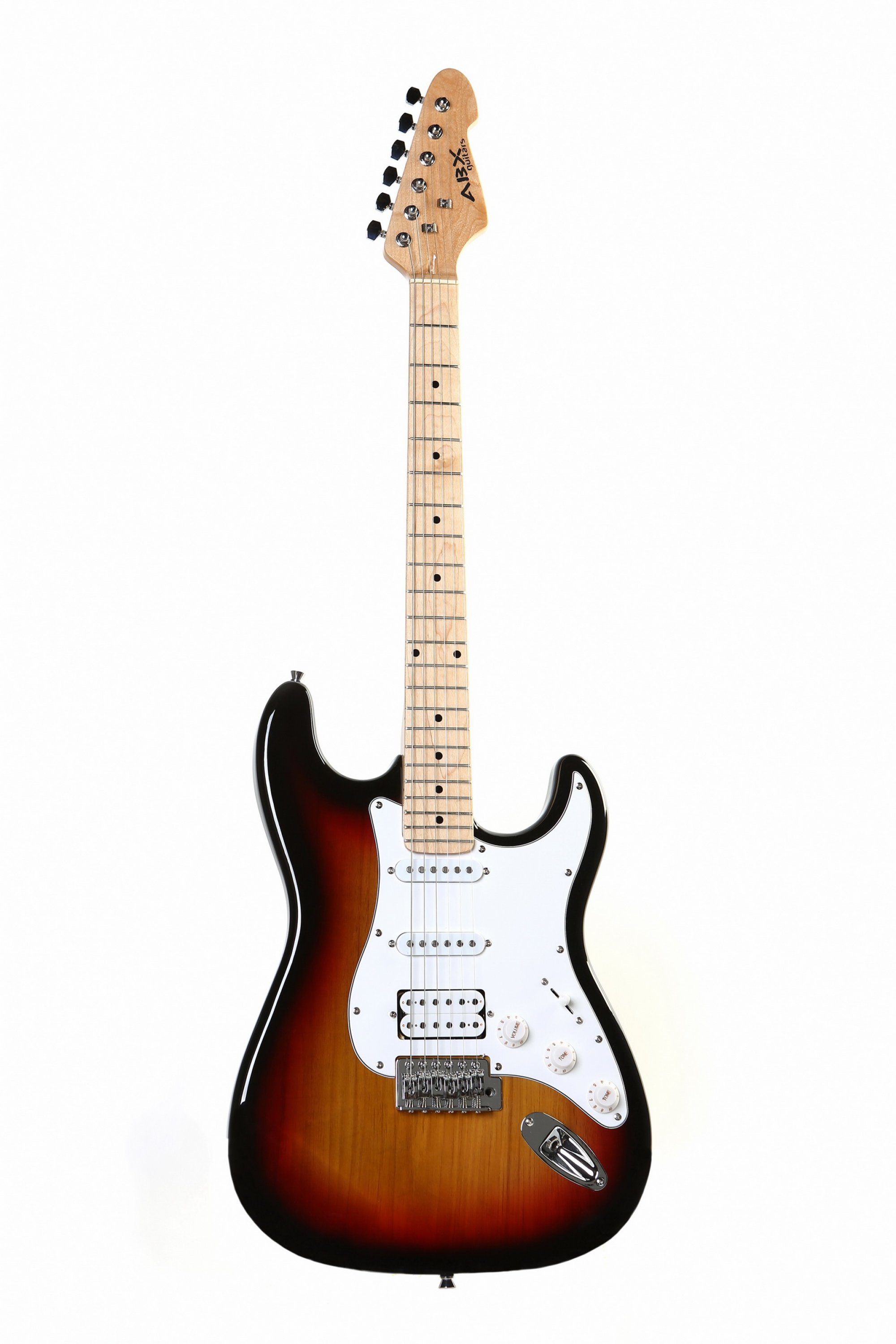 Elektrická kytara typu ST, v barvě sunburst, high gloss.