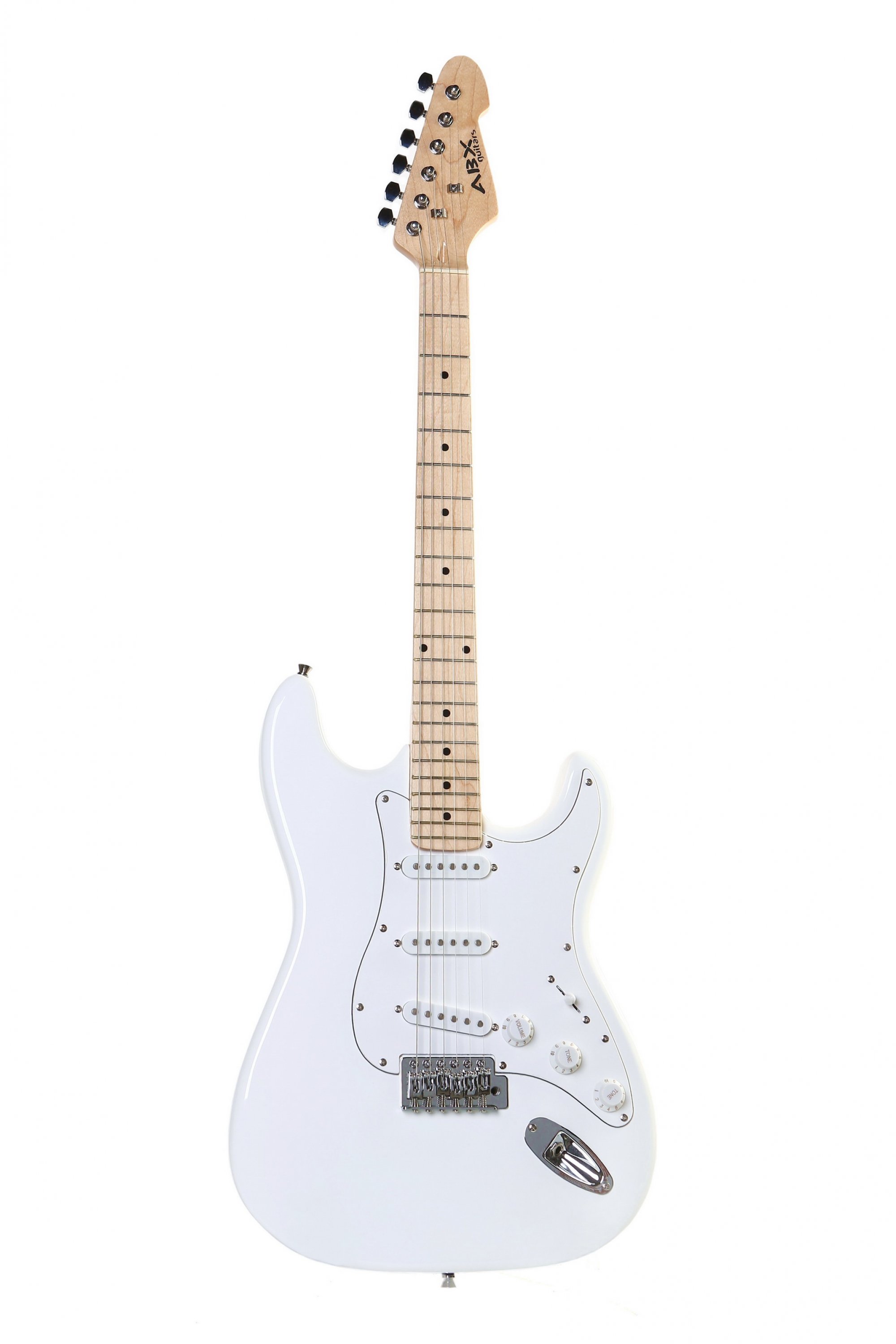 Elektrická kytara typu ST, v bílé barvě, high gloss.